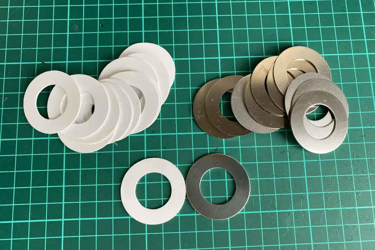 and the parts were created in search of work efficiency, but on the contrary, the efficiency became worse. After much worrying and with no budget at all, I bought a spacer made of stainless steel (because my home is humid and rusty) with some good precision. As a result, the tear and width have both stabilised, but I am happy and sad to say that this jig component alone has cost me more than I imagined...