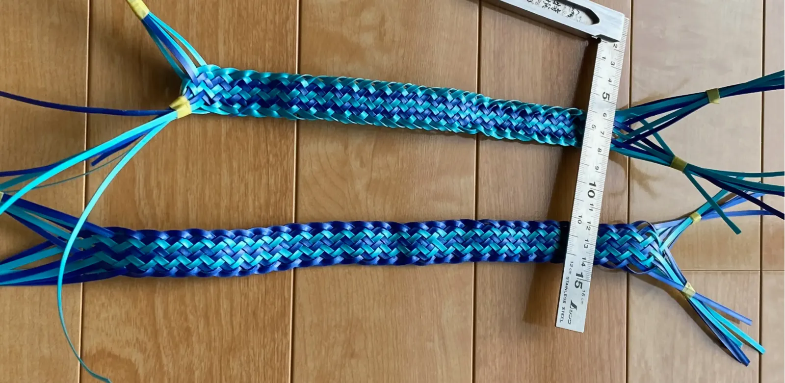 I was worried that it would break easily if pulled too hard when about 3 mm wide, but this worry disappears when it is braided in.