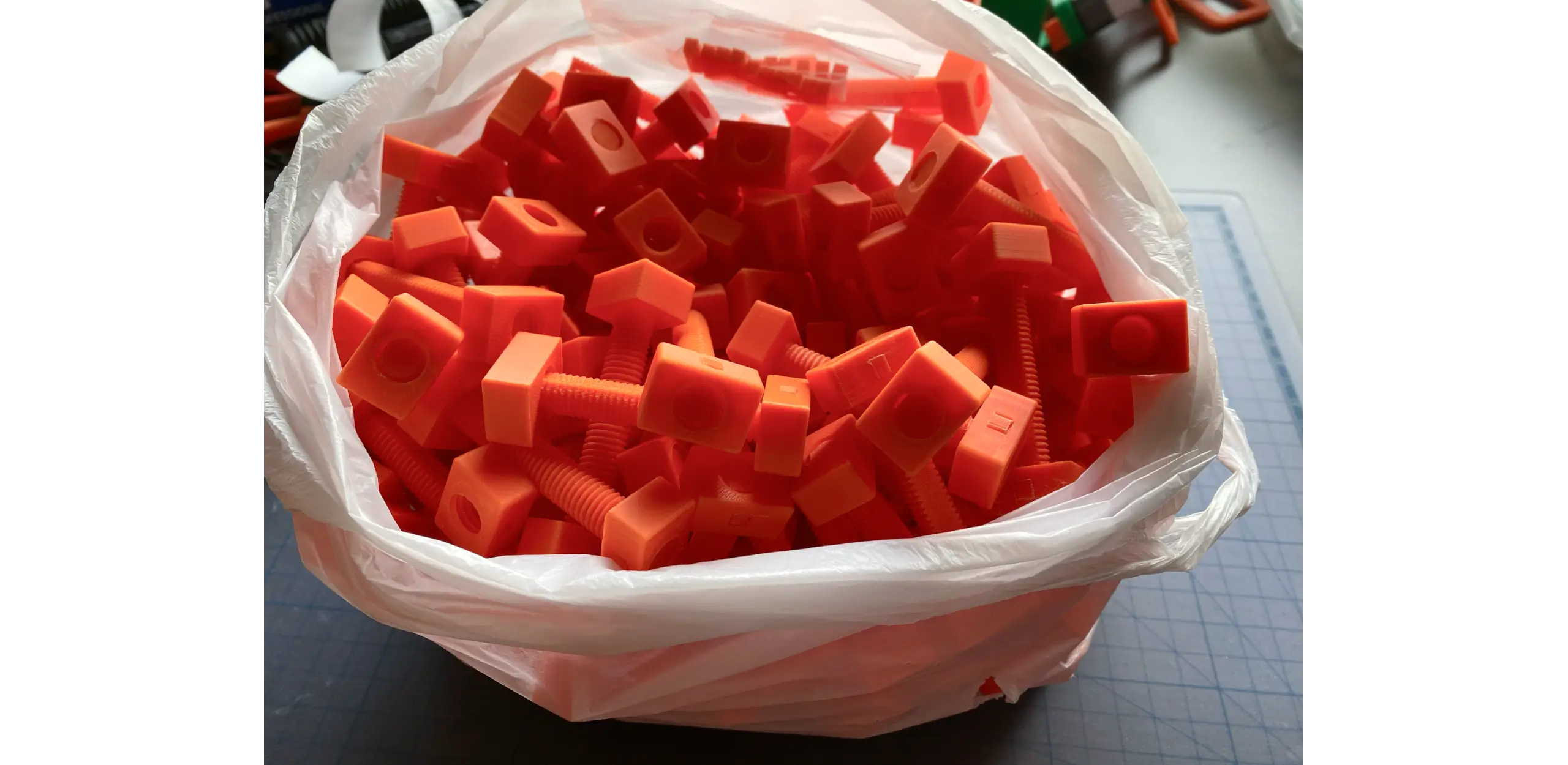 一度プリントしてしまったボルトとナットは、色々と再使用方法を模索したものの、結局、適切な解決策は見つかりませんでした。この結果、完成していた約1000g分のプリント済みボルト・ナットが全て使えないという、痛恨のロストが発生...