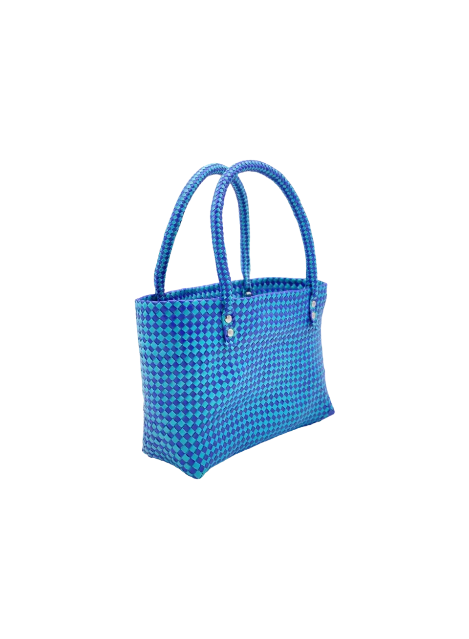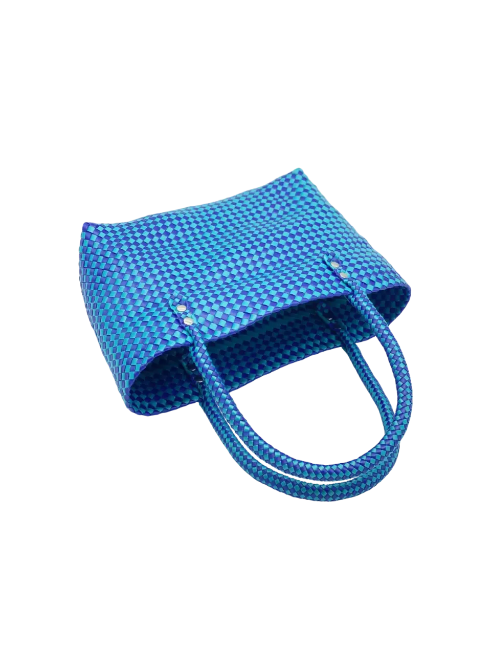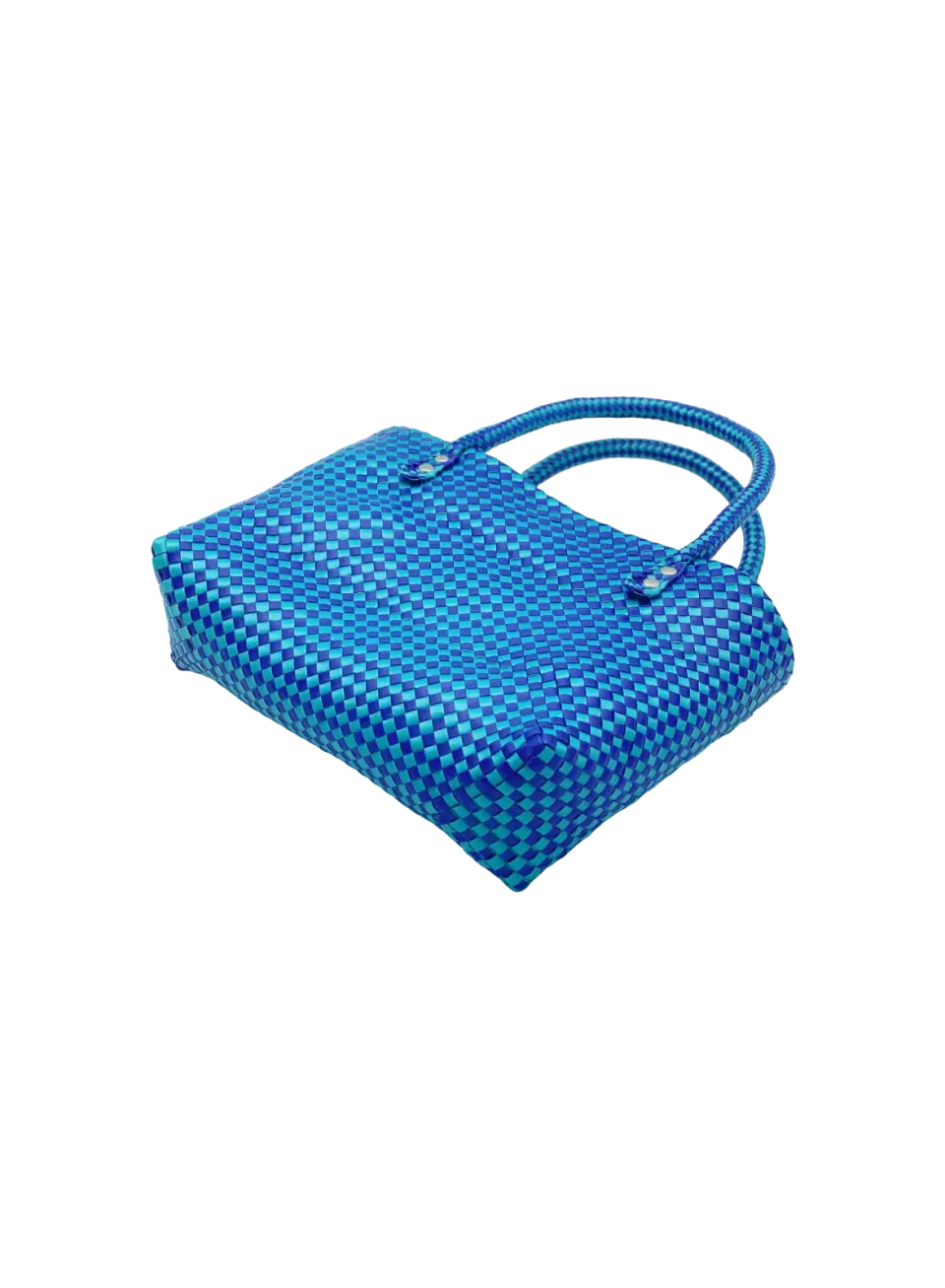 - ハンドルの芯材には、通常PPバンドの持ち手カバーに使われる透明ビニールホース(外径Φ10mm)を採用しました。さらに、カシメ(金具)をこの芯材を通して固定することで、持ち手の強度を大幅に強化しています。